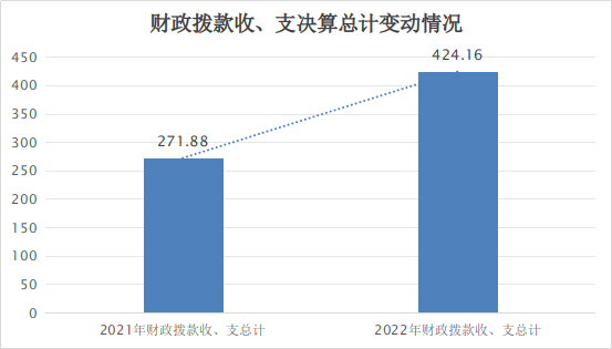 2022年财政拨款收、支总计424.16万元。与2021年相比,财政拨款收、支总计各增加152.28万元,增长35.9%。主要变动原因是项目经费增加。