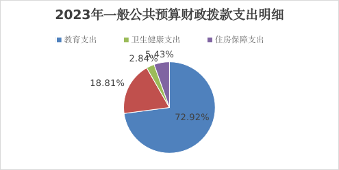 2023年一般公共预算财政拨款支出393.3万元,主要用于以下方面:教育支出286.8万元,占72.92%;社会保障和就业支出74.01万元,占18.81%;卫生健康支出11.19万元,占2.84%;住房保障支出21.31万元,占5.43%。