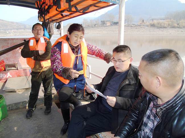2月11日,市海事局局长杨映刚带领检查组一行深入我县检查水上交通春运工作。