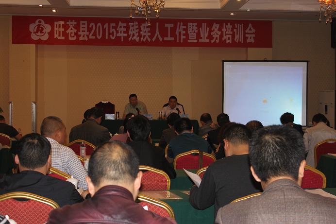 4月17日,县残联在良宇酒店召开2015年残疾人工作暨业务培训会, 38个乡镇(管理办)残联理事长、专职委员、“量服”专干,旺苍县联通公司业务人员和县残联机关全体工作人员共120人参加了会议。会议由县残联理事长任辉荣主持。
