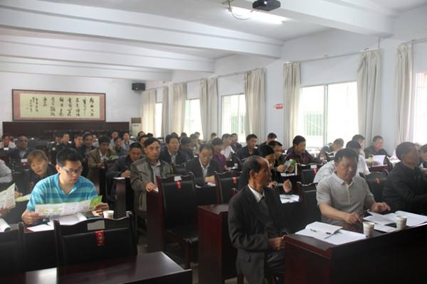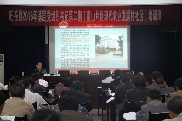 5月6日,在旺苍县委组织部、县委党校举办的2015年基层党组织书记培训班上,县人口计生局党组书记、局长向荣贵正在举行别开生面的人口计生政策理论知识讲座。