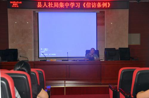 二是强化集中学法。每月安排两次,利用周五下午,组织全体干部职工集中学习《四川省依法治省纲要》、《关于全面深入推进依法治市的决定》、《信访条例》等;各股室、各直属单位根据自身职能职责,组织全局干部职工学习相关的法律法规,如就业局组织学习了《中华人民共和国就业促进法》,社保局组织学习了《中华人民共和国社会保险法》,劳动监察大会组织学习了《劳动保障监察条例》、《中华人民共和国劳动合同法》等。今年来,共开展集中学法12次。