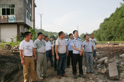 7月1日,拟任副县长、公安局长朱明庆带领县应急办、交通局、水务等相关部门人员深入“6.28”洪水中受灾严重的大德乡指导抢险救灾和灾后重建工作。