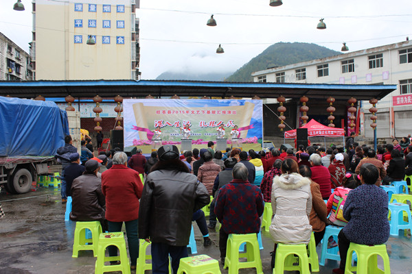 11月12日,静乐寺管理办灯光球场,不时传出一阵阵掌声、欢呼声、喝彩声……中共旺苍县委宣传部、旺苍县文广新局举办的“深入生活﹒扎根人民”---旺苍县2015年文艺下基层汇报会正在这里进行。