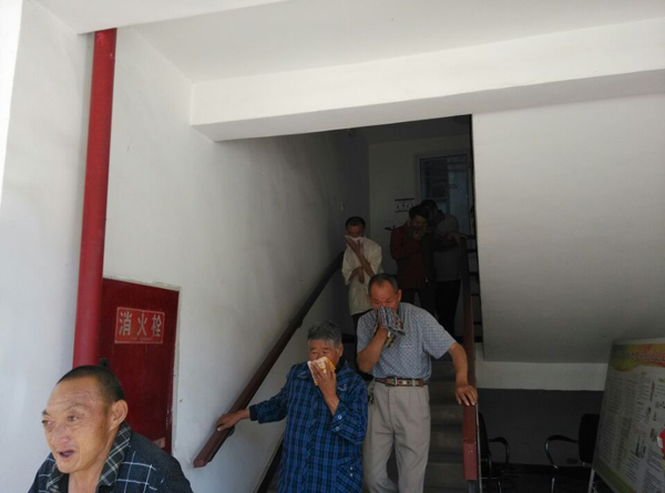 现场模拟在二楼起火,入住敬老院的老人在工作人员的指导和帮助下,利用湿毛巾捂住口鼻,低身弯腰,3分钟内将40名人员安全转移到安全区域内,工作人员迅速扑灭了火焰。随后黄洋派出所警官讲解了安全灭火知识及其它安全注意事项,黄洋镇政府分管领导讲解了汛期安全防范知识,进一步提高了敬老院等重点场所安全应急处置能力。(黄洋镇 蹇晓东)