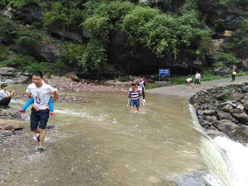 6个村的必经之路大河村夏家沟,7名干部从早上7点开始,坚持在漫水桥处送每一个学生过河。据统计,已护送学生53名,老人妇女37人,摩托车14辆。(大两乡  刘志平)