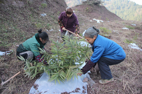 近日,黄洋镇店子村二、三、四、五社新栽植楠竹苗6万株,组织了劳动力1000余人,并开展了清园、除草、放线、打窝、施肥等行动,今年投劳投资100万元,新栽植楠竹800亩。