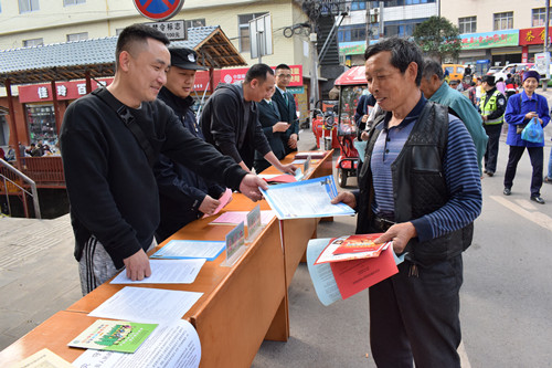 3月30日,三江镇利用逢场日,联合农机、人社、计生、畜牧、妇联、工商、交管、卫生院等共计21个部门在场镇街心花园开展法治宣传活动。