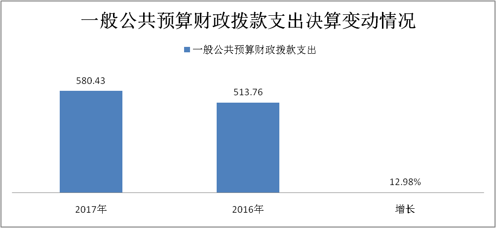 2017年度一般公共预算财政拨款支出580.43万元,占本年支出合计的100%。与2016年相比,一般公共预算财政拨款增加66.67万元,增长12.98%。