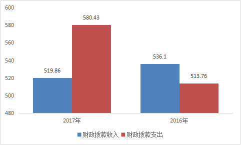 2017年度财政拨款收入总计519.86万元。与2016年相比,财政拨款收收减少16.25万元,减少3.03%。