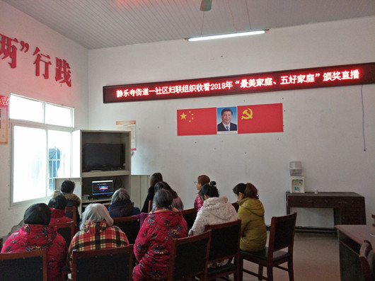 静乐寺街道办妇联收看2018年四川省最美家庭事迹巡讲暨“五好家庭”“最美家庭”颁奖