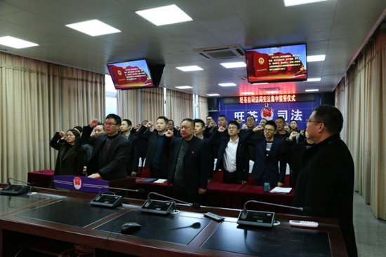 12月10日,县司法局宪法集中宣誓仪式在该局5楼会议室进行,该活动是今年“宪法宣传周”系列活动之一,县司法局机关干部,各司法所所长、专职司法助理员40余人参加了集中宣誓仪式。仪式开始,领誓人左手抚按《中华人民共和国宪法》,右手举拳宣读誓词,全体干部跟随领誓人诵读誓词,用庄严的誓词和洪亮的声音,宣告对祖国、对宪法、对人民的忠诚。
