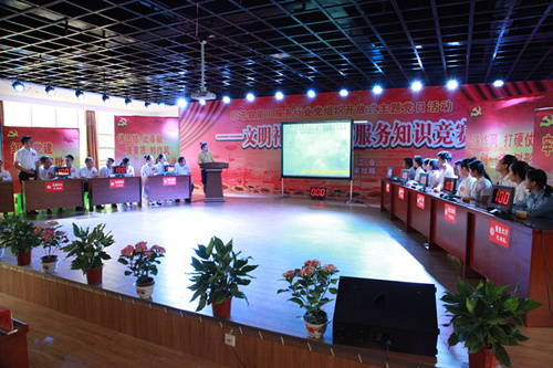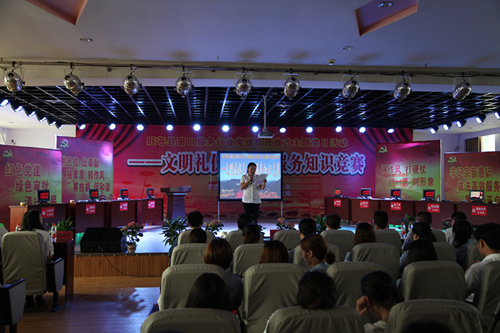 本次竞赛以《中华人民共和国行政许可法》、《中华人民共和国工会法》、《中国共产党廉洁自律准则》、《四川省政务服务条例》、《中华人民共和国职业病防治法》、《公务员文明礼仪》、《党建基本知识》为主要内容,分必答题、抢答题、风险题等,穿插观众互动环节,27名工作人员组成的9个代表队进入决赛。决赛现场气氛热烈、高潮迭起,经过激烈角逐,税务大厅窗口获得竞赛一等奖,人社大厅窗口获最佳选手奖。