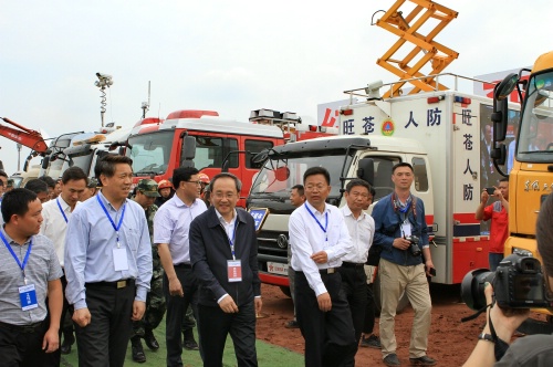 近日,四川省2019年省级抗震救灾综合演练在成都市金堂县淮口镇举行,此次演练以金堂县发生7.1级地震为模拟背景,有关部门迅速启动Ⅱ级响应机制,第一时间派出救援队伍12支300余人,现场投入各类装备及设备300余台(套),直升机6架,无人机4架,依次展演了矿山救援、危化品救援,空中和水上施救、电力电信交通设备设施抢修等演练。整个演练规模庞大,秩序井然,军地3000余人现场进行观摩。