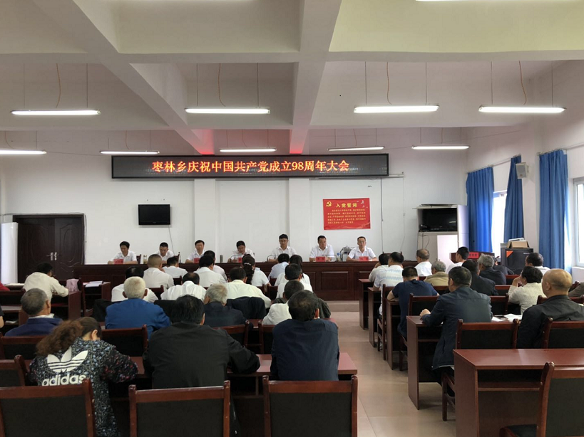 6月27日,枣林乡党员欢聚一堂,共同庆祝中国共产党成立98周年。