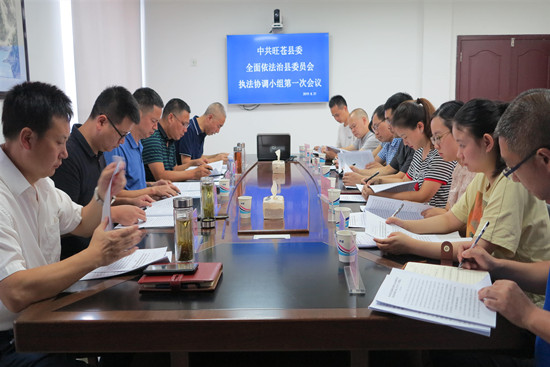 会上,传达学习了习近平总书记在中央全面依法治国委员会第一次、第二次会议上的重要讲话精神和省委全面依法治省委员会第一次会议、市委全面依法治市委员会第一次会议和县委全面依法治县委员会第一次会议精神,审议了《中共旺苍县委全面依法治县委员会执法协调小组2019年工作要点》和《中共旺苍县委全面依法治县委员会执法协调小组工作细则》,听取了3个执法协调小组成员单位行政执法工作情况汇报。