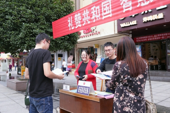 9月17日下午,由旺苍县委宣传部、旺苍县科协、旺苍县经济信息化和科学技术局牵头,教育局、人社局等22个单位(部门)在县电影院步行街开展了以“礼赞共和国,智慧新生活”为主题的“全国科普日”集中宣传活动。县司法局以此为契机,深入开展法治宣传和法律服务。