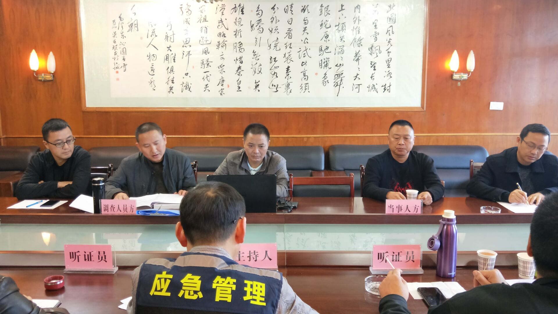 2019年10月15日,依据当事人的申请,县应急管理局组织召开了行政处罚案件听证会。本次听证会由主持人、案件调查人员、涉事单位当事人、听证员、书记员等10余人参加。