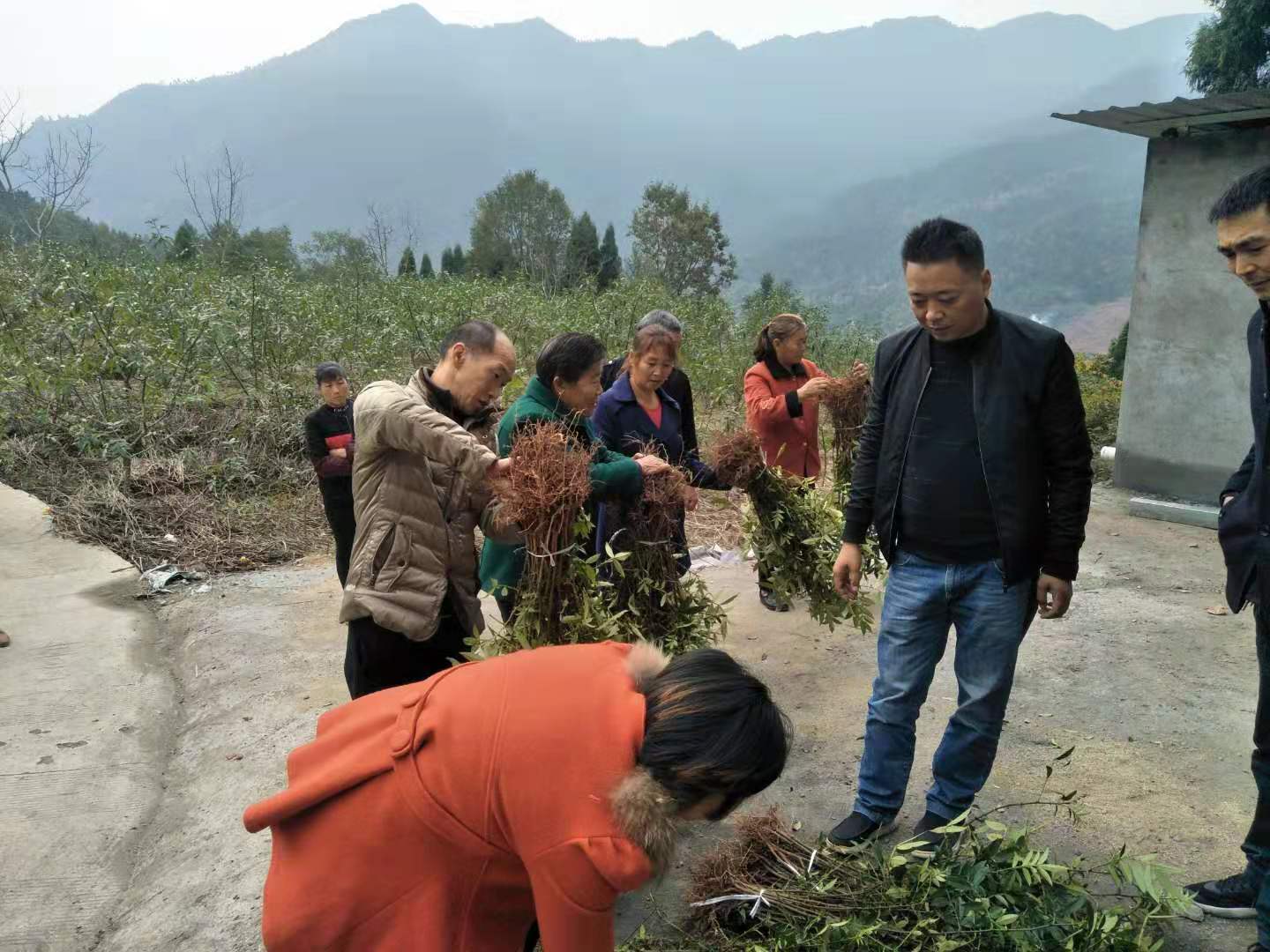 11月8日,通过葳蕤种植专业合作社无偿为贫困户发放青花椒树苗,并带其到青花椒种植园区和初加工车间参观,现场培训青花椒种植技术。