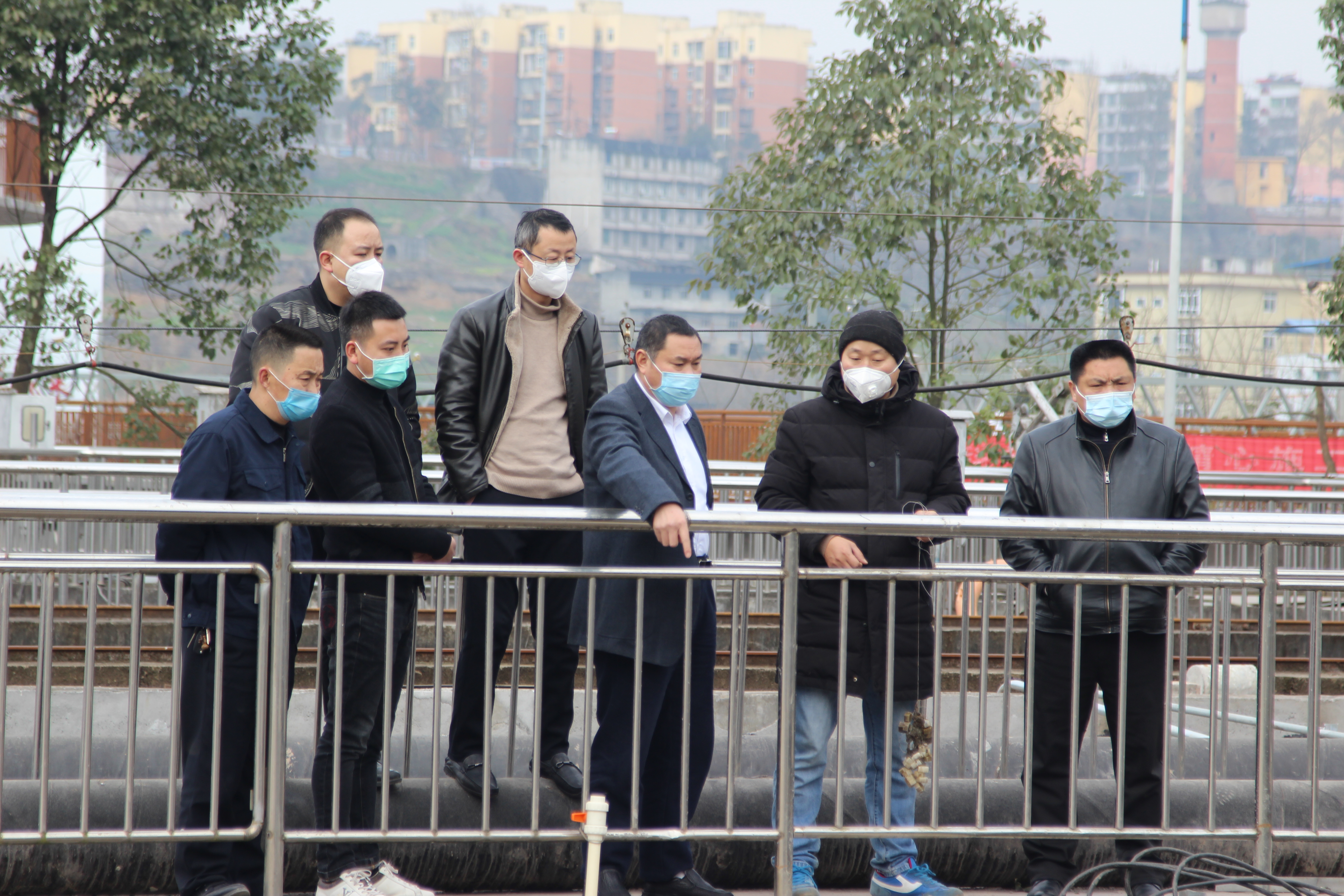 在施工现场,查看了氧化沟调试情况,施工人员到岗情况。同时,提醒施工人员要做好自我防护,要“戴口罩、勤洗手、少聚集等”。