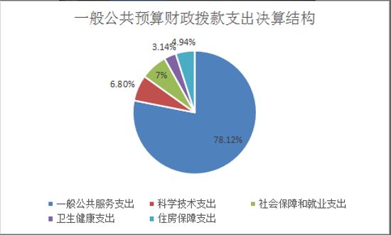 2019年一般公共预算财政拨款支出1105.52万元,主要用于以下方面:一般公共服务(类)支出864.13万元,占78.12%;科学技术(类)支出75万元,占6.8%;社会保障和就业(类)支出77.07万元,占7%;卫生健康支出34.76万元,占3.14%;住房保障支出54.57万元,占4.94%。