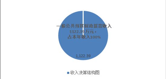 2019年本年收入合计1122.39万元,其中:一般公共预算财政拨款收入1122.39万元,占100%;政府性基金预算财政拨款收入0万元,占0%;上级补助收入0万元,占0%;事业收入0万元,占0%;经营收入0万元,占0%;附属单位上缴收入0万元,占0%;其他收入0万元,占0%。