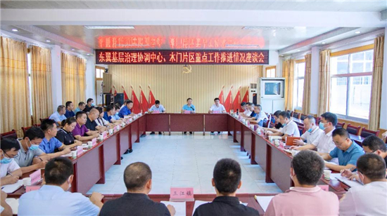 调研结束后,在三江镇政府会议室,唐文辉主持召开东翼基层治理协调中心、木门片区重点工作推进情况座谈会,宣讲市、县党代会精神,听取县级相关部门和相关乡镇主要负责人关于当前重点工作的汇报。