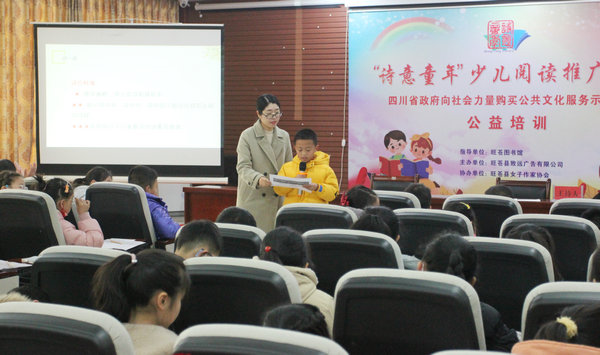 本次阅读推广活动以“诗意童年”少儿阅读推广为主题,邀请到四川省散文学会、广元市作家协会会员、旺苍县佰章小学代蕊副校长为孩子们举办了一堂关于阅读与写作的公益培训。