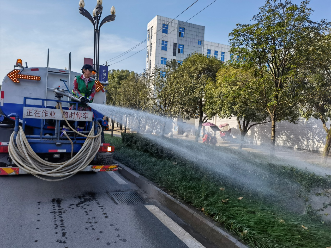 二是全体动员,安排水车针对滨河路、环城路、兴旺干道、红旗干道及东快速通道等主要道路两旁的绿化带、行道树进行冲尘。近一周,共出动绿化喷洒车45台次、用水540余吨,完成5万多平米绿化带、2500余株行道树冲尘工作。