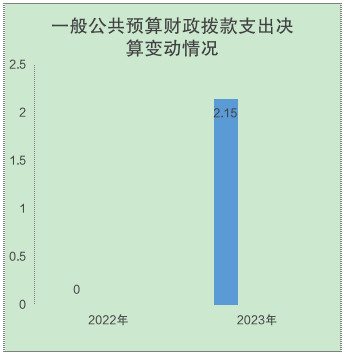 2023年度一般公共预算财政拨款支出2.15万元,占本年支出合计的100%。与2022年度相比,一般公共预算财政拨款支出增加2.15万元,增加100%。主要变动原因是本年新增单位。