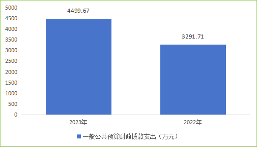 2023年度一般公共预算财政拨款支出4,499.67万元,占本年支出合计的89.26%。与2022年度相比,一般公共预算财政拨款支出增加1,207.96万元,增长36.70%。主要变动原因是:职工以前年度基础绩效工资的兑现以及项目资金的使用率提高。