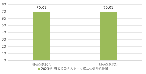 2023年度财政拨款收、支总计均为70.01万元。与2022年度相比,财政拨款收、支总计各增加15.47万元,增长28.36%。主要变动原因是2022年教师核定编制数1人,在编教师2人,2023年3人教师编制从张华小学划到张华幼儿园,各项数据增加。