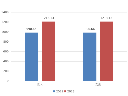2023年度收、支总计1213.13万元。与2022年相比,收、支总计990.66万元,增加222.47万元,增长22.4%。主要变动原因是主要增加了人员工资调标、义务教育综合奖补、教师周转房改造专项、教育扶贫专项等费用。