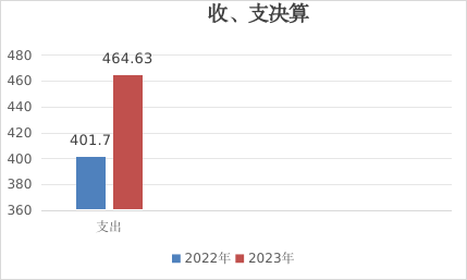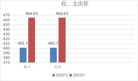 2023年度收、支总计464.63万元。与2022年相比,收、支总计增加62.93万元,增加15.67%。主要变动原因是增加了人员工资调标、义务教育综合奖补、教育扶贫专项等费用。