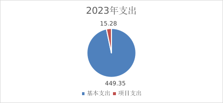 2023年本年支出合计464.63万元,其中:基本支出449.35万元,占96.71%;项目支出15.28万元,占3.29%;上缴上级支出0万元,占0%;经营支出0万元,占0%;对附属单位补助支出0万元,占0%。