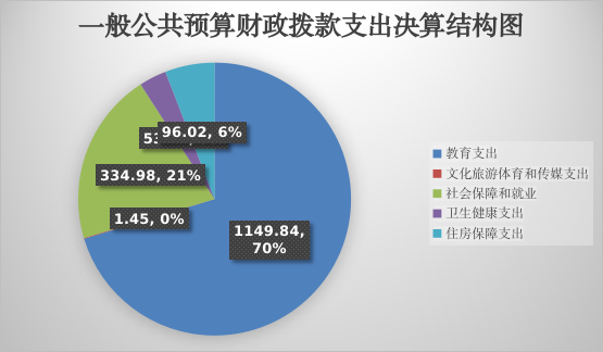 2023年一般公共预算财政拨款支出1635.45万元,主要用于以下方面:教育支出(类)1149.84万元,占70.3%;文化旅游体育与传媒支出(类)1.45万元,占0.09;社会保障和就业(类)支出334.98万元,占20.48%;卫生健康支出53.17万元,占3.25%;住房保障支出96.02万元,占5.87%。