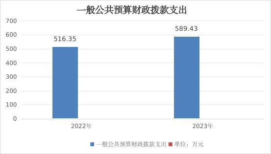 2023年一般公共预算财政拨款支出589.43万元,占本年支出合计的98.34%。与2022年相比,一般公共预算财政拨款支出增加73.08万元,增长14.15%。主要变动原因是人员经费支出增加,新增抚恤金支出。