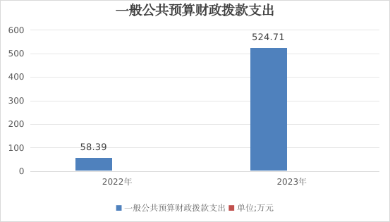 2023年一般公共预算财政拨款支出524.71万元,占本年支出合计的100%。与2022年相比,一般公共预算财政拨款支出减少466.32万元,增加798.6%。主要变动原因是幼儿园项目增加。