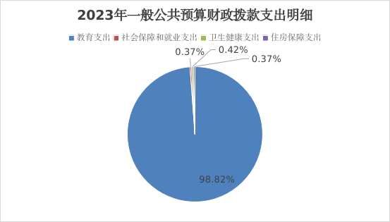 2023年一般公共预算财政拨款支出524.71万元,主要用于以下方面:教育支出518.55万元,占98.82%;社会保障和就业支出1.99万元,占0.37%;卫生健康支出2.21万元,占0.42%;住房保障支出1.95万元,占0.37%。
