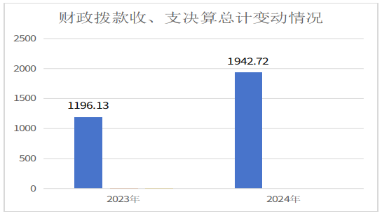 2024年度财政拨款收、支总计均为1942.72万元。与2023年度1196.13万元相比,财政拨款收、支总计各增加746.59万元,增长62.42%。主要变动原因是增加鼓道源资产购置支出。