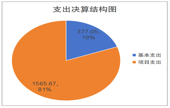 2024年本年支出合计1942.72万元,其中:基本支出377.05万元,占19.41%;项目支出1565.67万元,占80.59%;上缴上级支出0万元,占0%;经营支出0万元,占0%;对附属单位补助支出0万元,占0%。