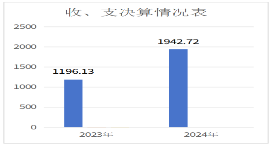 2024年度收、支总计均为1942.72万元。与2023年度1196.13万元相比,收、支总计各增加62.42万元,增长65.54%。主要变动原因是增加鼓道源资产购置支出。