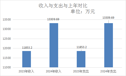 2024年度收、支总计均为13309.69万元。与2023年度相比,收、支总计各增加1456.49万元,增长12.29%。主要变动原因是人员增加及项目收支增加。