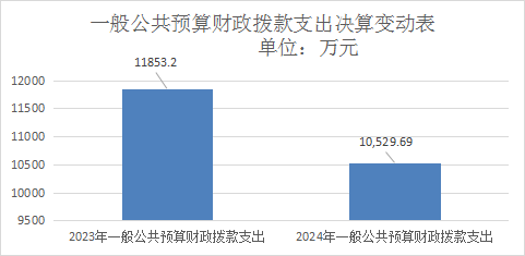 2024年度一般公共预算财政拨款支出10,529.69万元,占本年支出合计的79.11%。与2023年度相比,一般公共预算财政拨款支出减少1323.51万元,下降11.17%。主要变动原因是部分项目纳入基金项目预算。