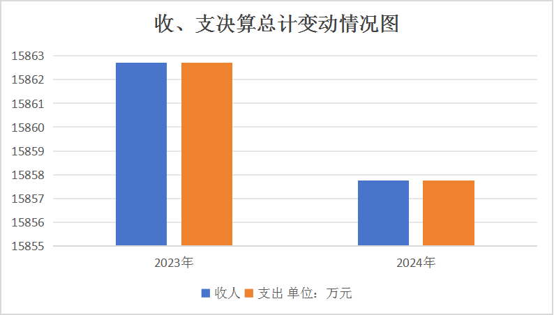 2024年度收、支总计均为15857.77万元。与2023年度15862.72万元相比,收、支总计各减少4.95万元,下降0.03%。主要变动原因是预算项目减少。