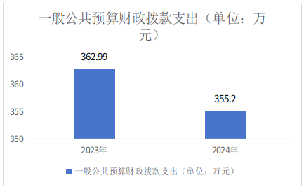 2024年度一般公共预算财政拨款支出355.2万元,占本年支出合计的100%。与2023年度相比,一般公共预算财政拨款支出减少7.79万元,下降2.15%。主要变动原因是人员变动、厉行节约。