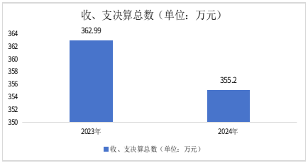 2024年度收、支总计均为355.2万元。与2023年度相比,收、支总计各减少7.79万元,下降2.15%。主要变动原因是人员变动、厉行节约。