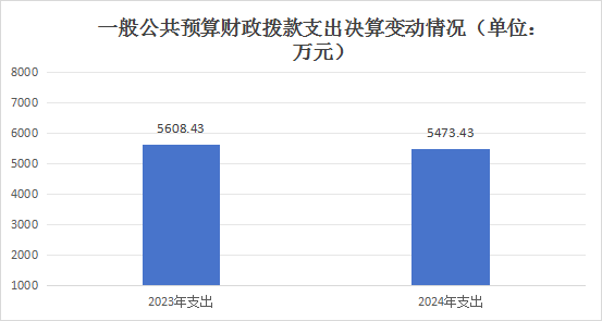 2024年度一般公共预算财政拨款支出5473.43万元,占本年支出合计的95.87%。与2023年度相比,一般公共预算财政拨款支出减少135万元,下降2.41%。主要变动原因是2024年工程项目减少。