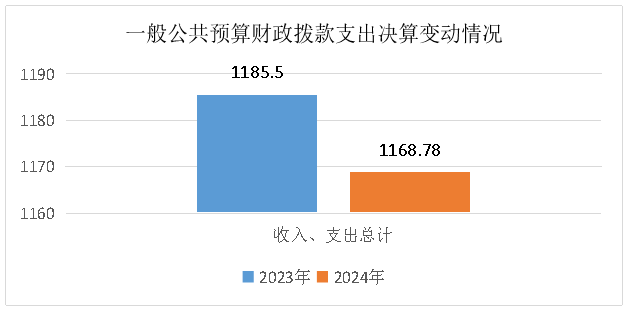 2024年一般公共预算财政拨款支出1168.78万元,占本年支出合计的100%。与2023年相比,一般公共预算财政拨款支出减少16.72万元,减少1.41%。主要变动原因是项目经费预算减少。