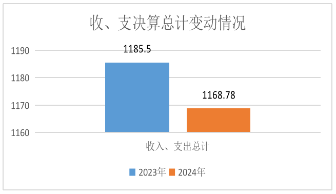 2024年度收、支总计1168.78万元。与2023年相比,收、支总计各减少16.72万元,减少1.41%。主要变动原因项目经费预算减少。
